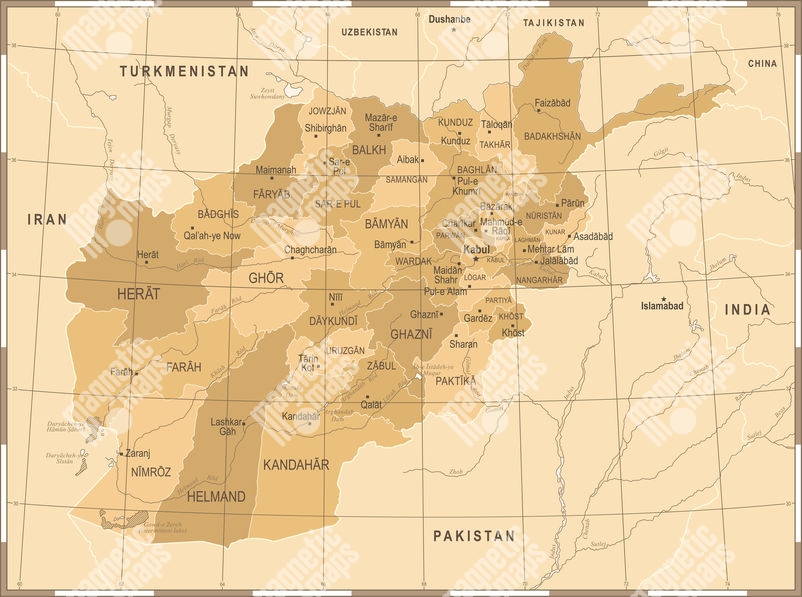 Magnetická mapa Afganistánu, vintage, hnědá