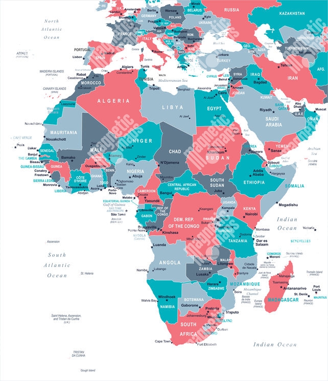 Magnetická mapa Afriky, ilustrovaná, barevná