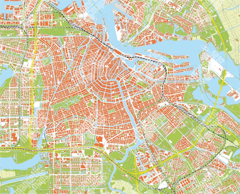 Magnetická mapa Amsterdamu, detailní, bez popisků