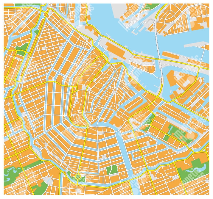 Magnetická mapa Amsterdamu, detailní, bez popisků