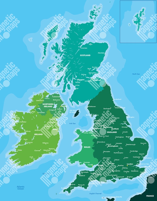 Magnetická mapa Anglie a Irska, ilustrovaná, zelená