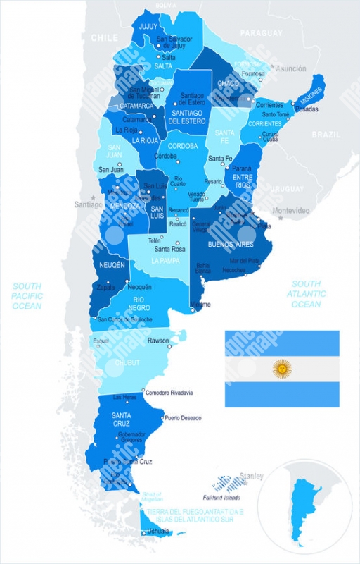 Magnetická mapa Argentiny, ilustrovaná, modrá