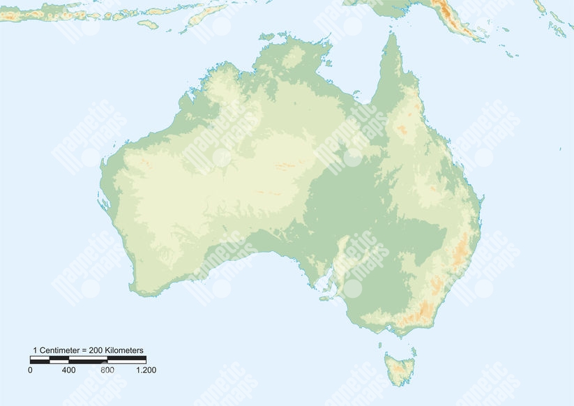 » Magnetická mapa Austrálie a oceánie, geografická, bez popisků