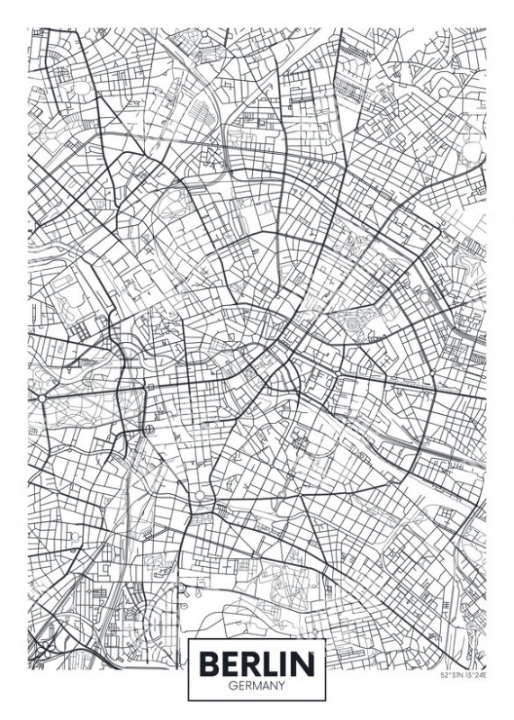 Magnetická mapa Berlína, ilustrovaná, černo-bíla