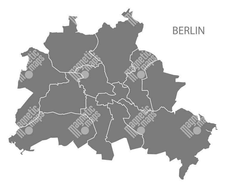 Magnetická mapa Berlína, ilustrovaná, šedá