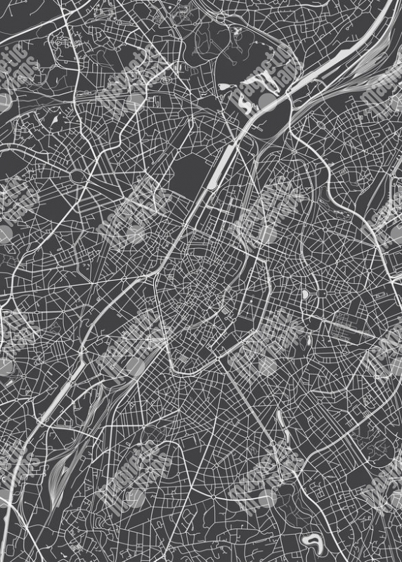 Magnetická mapa Bruselu, ilustrovaná, černo-bíla