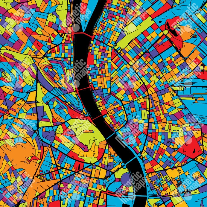 Magnetická mapa Budapeště, ilustrovaná, barevná