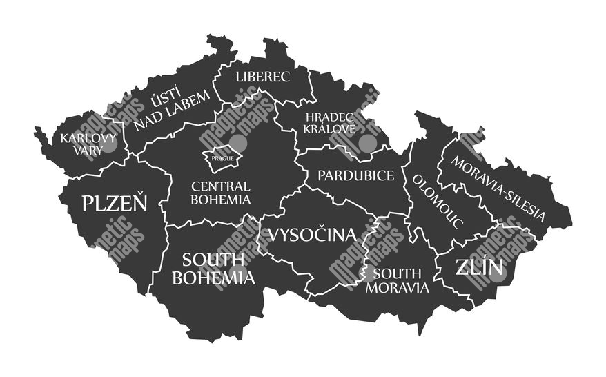 Magnetická mapa České republiky, ilustrovaná, černá