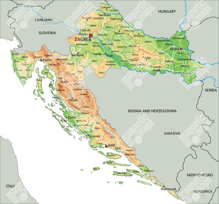 Magnetická mapa Chorvatska, geografická, barevná