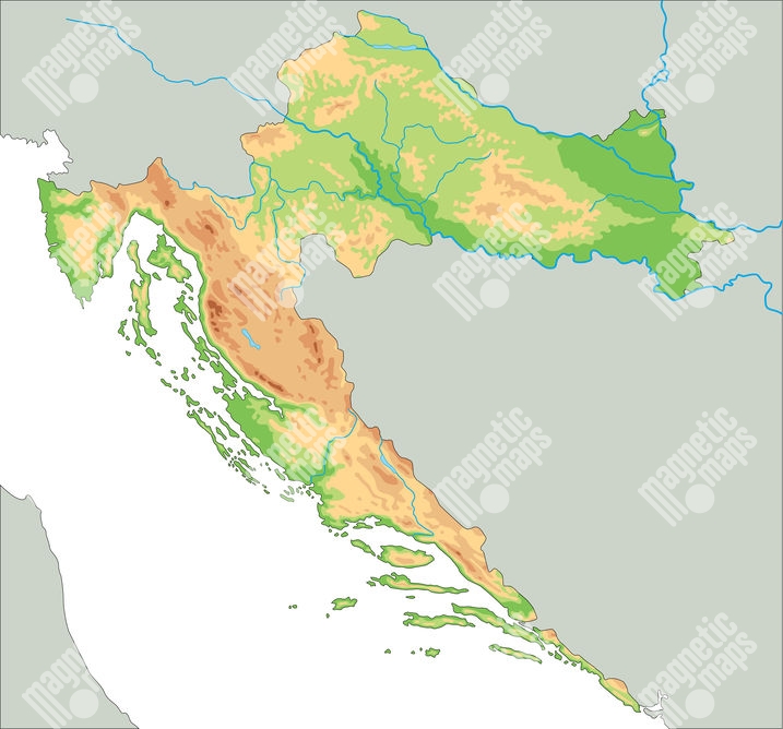 Magnetická mapa Chorvatska, geografická, barevná