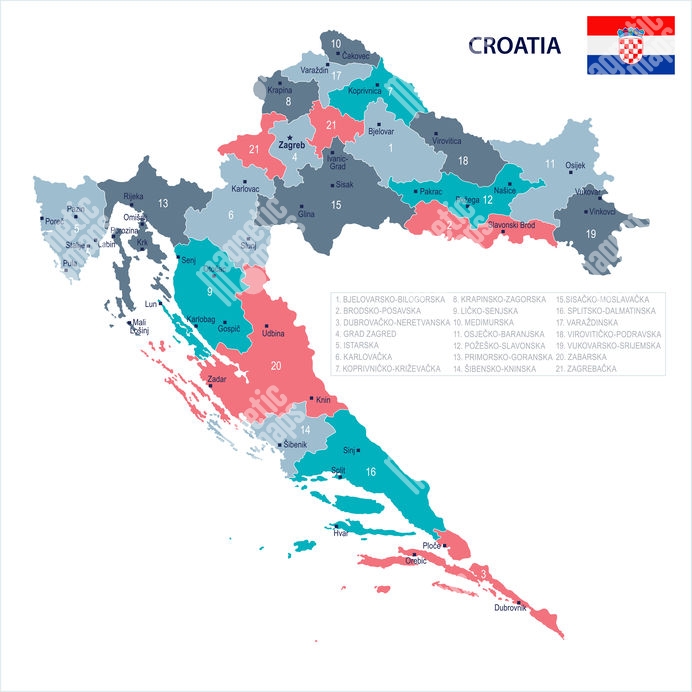 Magnetická mapa Chorvatska, ilustrovaná, barevná
