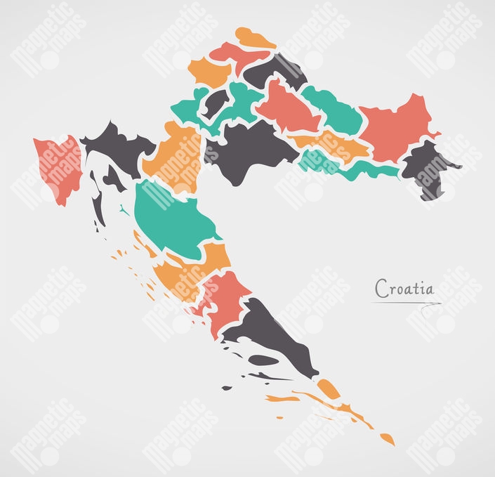 Magnetická mapa Chorvatska, ilustrovaná, barevná