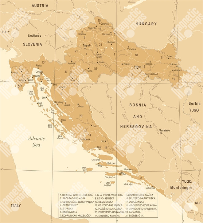 Magnetická mapa Chorvatska, vintage, béžová