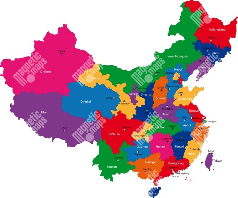 Magnetická mapa Číny, ilustrovaná, barevná