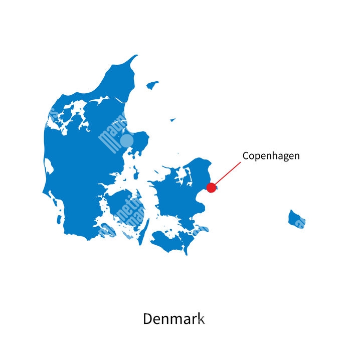 Magnetická mapa Dánska, ilustrovaná, modrá