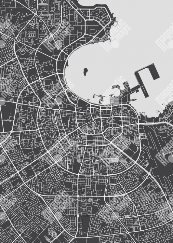Magnetická mapa Doha, ilustrovaná, černo-bíla