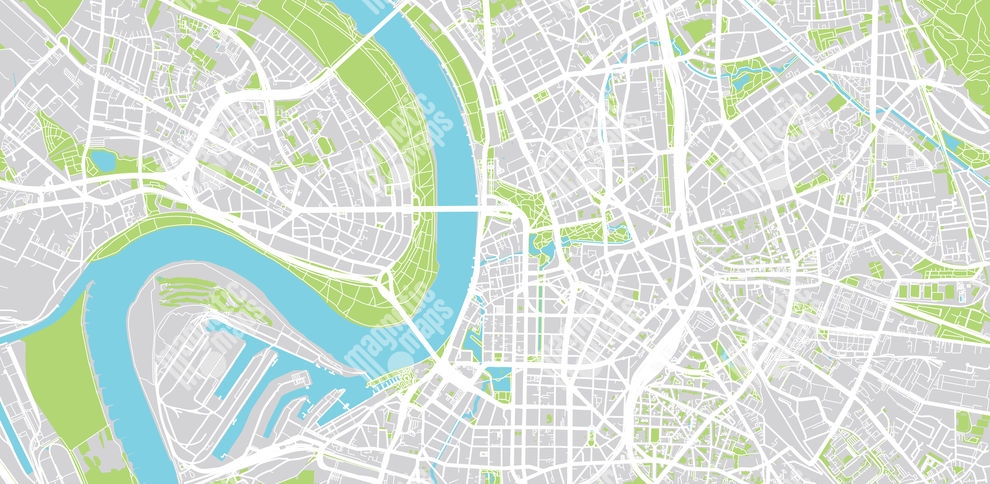 Magnetická mapa Dusseldorfu, ilustrovaná, barevná
