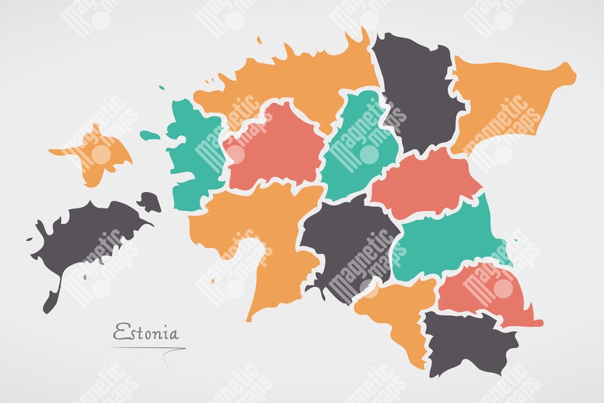 Magnetická mapa Estonska, ilustrovaná, barevná