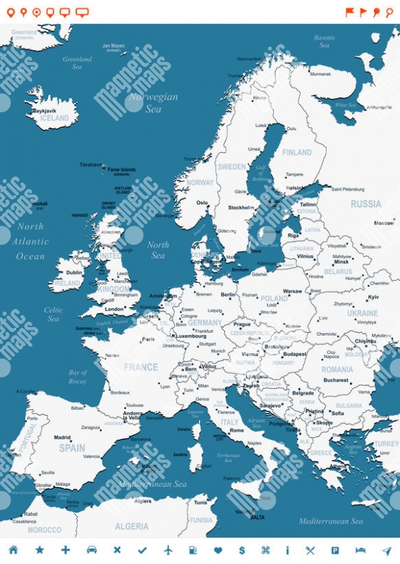 Magnetická mapa Evropy, ilustrovaná, bílo-modrá