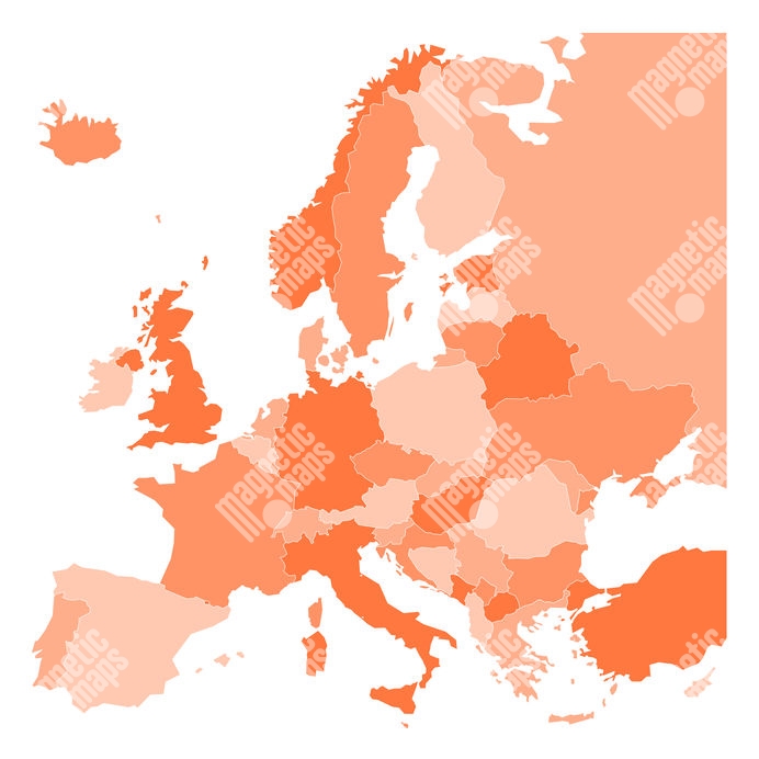 Magnetická mapa Evropy, ilustrovaná, oranžová