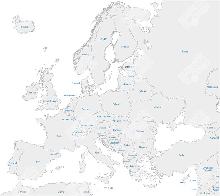 Magnetická mapa Evropy, ilustrovaná, šedá