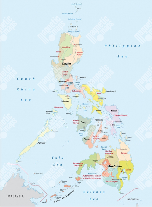 Magnetická mapa Filipín, administrativní, barevná