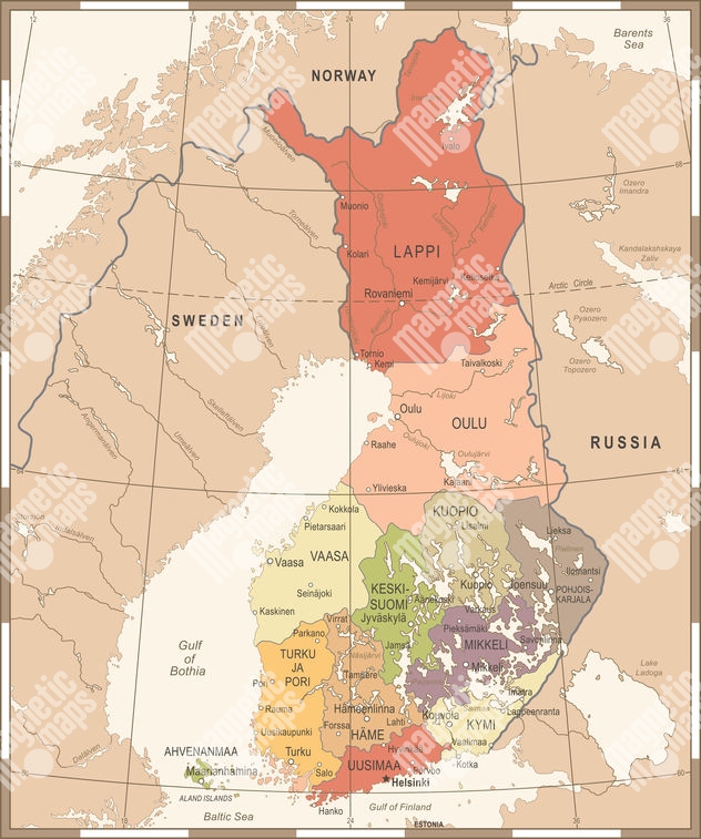 Magnetická mapa Finska, vintage, barevná