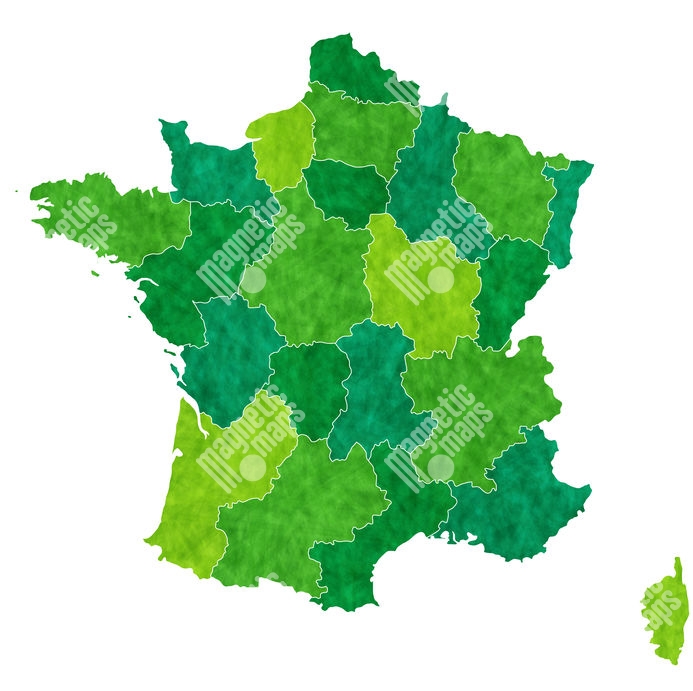 Magnetická mapa Francie, ilustrovaná, zeleno-žlutá