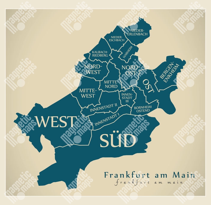 Magnetická mapa Franfurktu, ilustrovaná, modrá