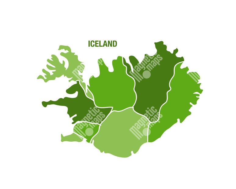 Magnetická mapa Islandu, ilustrovaná, zelená