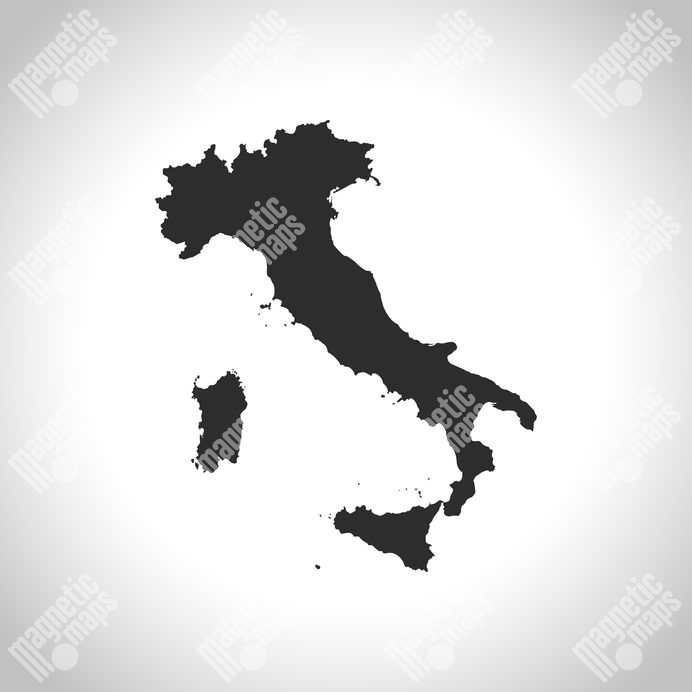 Magnetická mapa Itálie, ilustrovaná, šedá