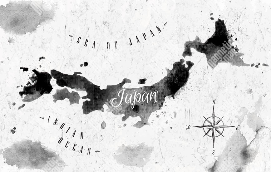 Magnetická mapa Japonska, watercolor, černá
