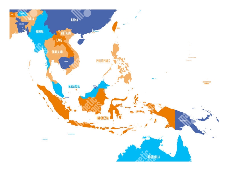Magnetická mapa Jihovýchodní Asie, vektorová, barevná