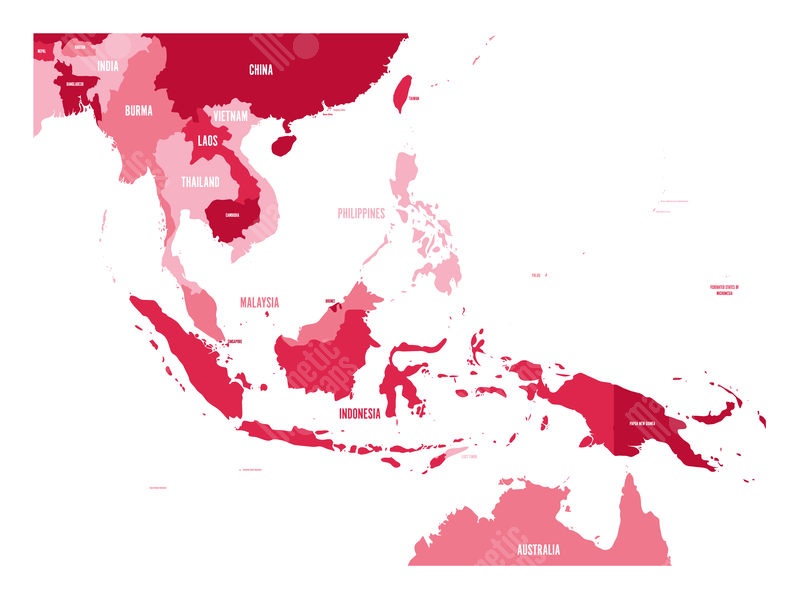 Magnetická mapa Jihovýchodní Asie, vektorová, černá