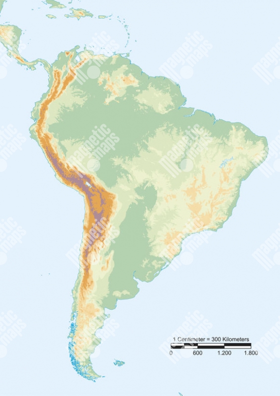 Magnetická mapa Jižní Ameriky, geografická, bez popisků
