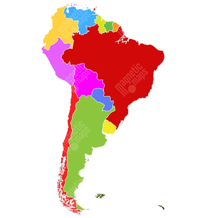 Magnetická mapa Jižní Ameriky, ilustrovaná, barevná
