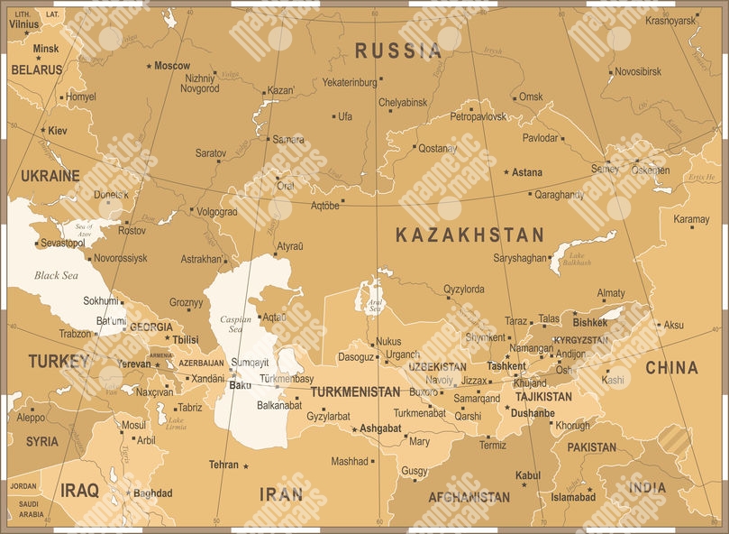 Magnetická mapa Kazachstánu, vintage, hnědá