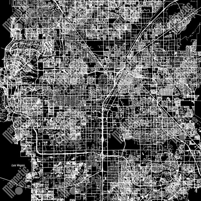 Magnetická mapa Las Vegas, ilustrovaná, černo-bíla