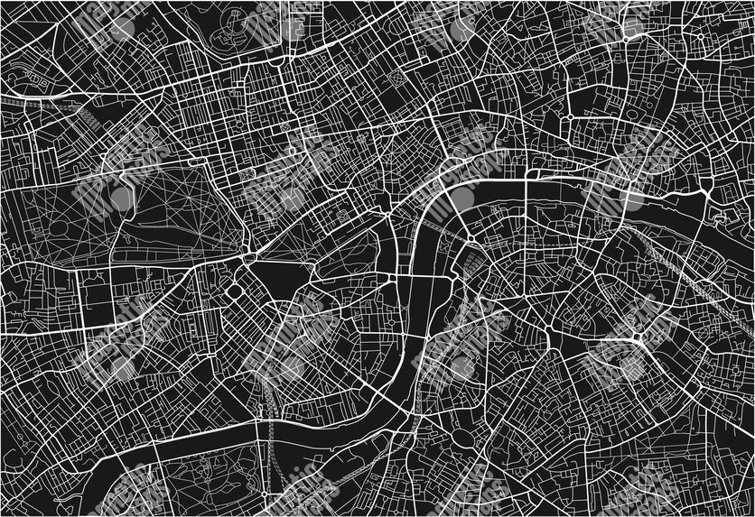Magnetická mapa Londýna, ilustrovaná, černo-bíla