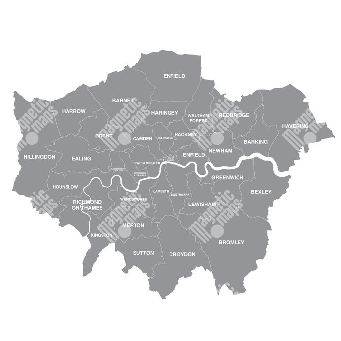 Magnetická mapa Londýna, ilustrovaná, šedá