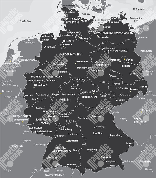 Magnetická mapa Německa, ilustrovaná, černo-bíla