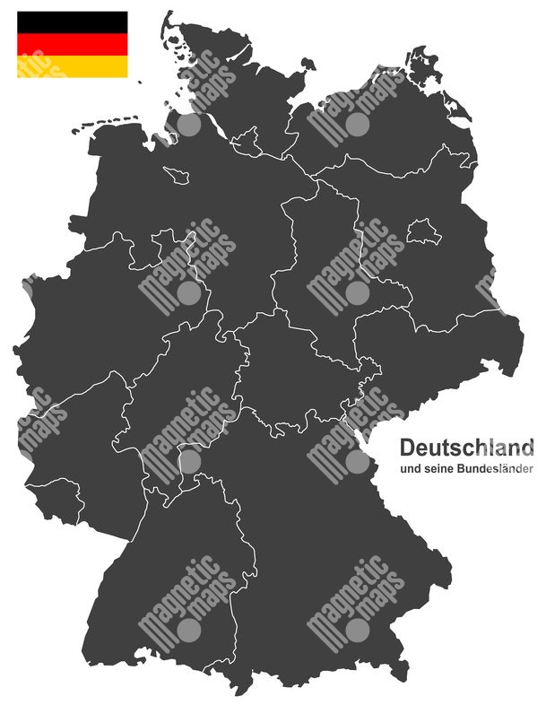 Magnetická mapa Německa, ilustrovaná, šedá