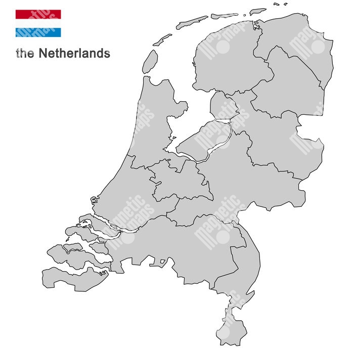 Magnetická mapa Nizozemí, ilustrovaná, šedá