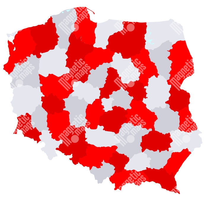 Magnetická mapa Polska, ilustrovaná, červeno-bílá