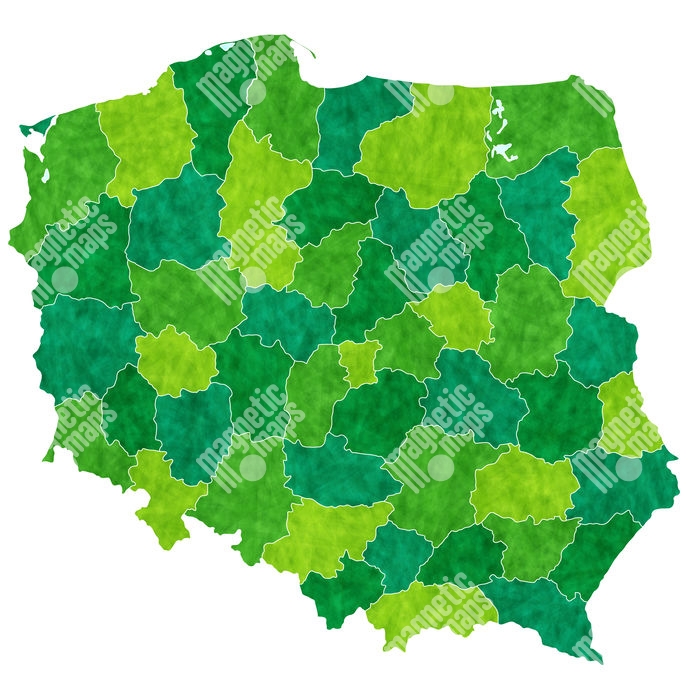 Magnetická mapa Polska, ilustrovaná, zeleno-žlutá