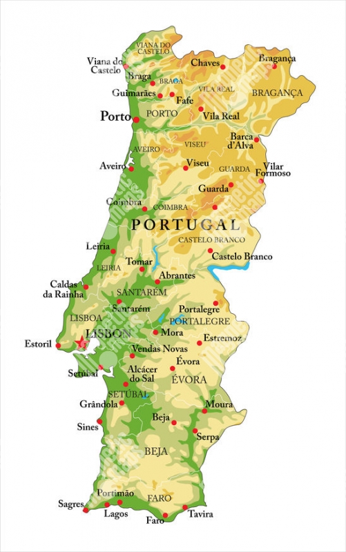 Magnetická mapa Portugalska, geografická, barevná