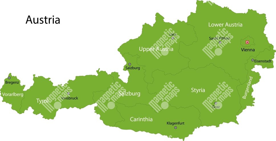 Magnetická mapa Rakouska, ilustrovaná, zelená