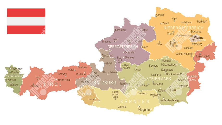 Magnetická mapa Rakouska, vintage, barevná