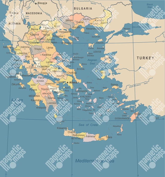 Magnetická mapa Řecka, detailní, barevná