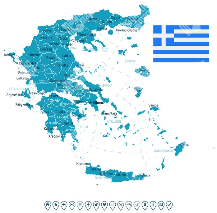 Magnetická mapa Řecka, ilustrovaná, bílo-modrá